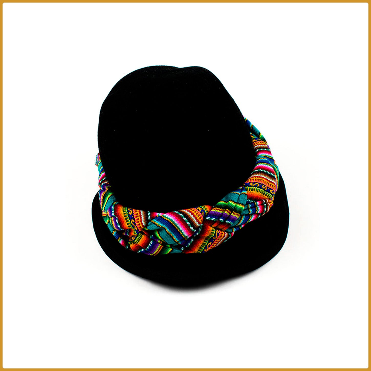 Bonnet en laine mérinos avec bande en tissu ethnique.